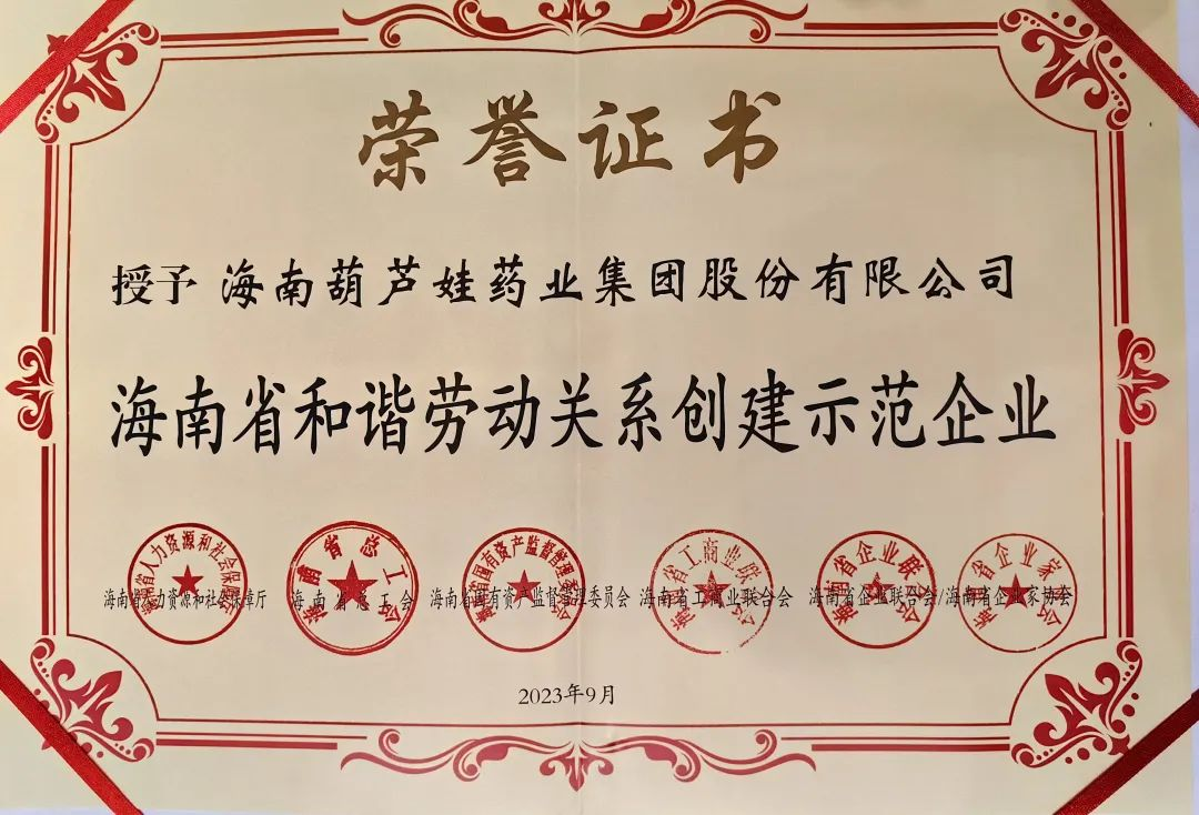 3044永利药业集团获评“海南省和谐劳动关系创建示范企业”