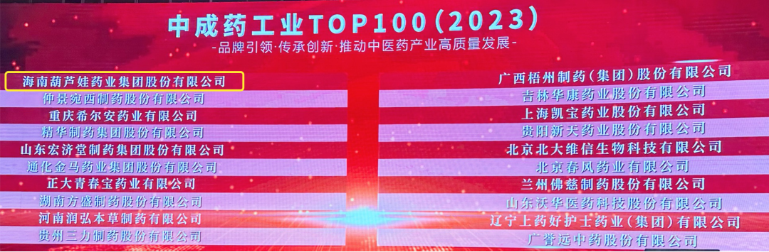 会上,还发布了“2023中成药工业TOP100”榜单,3044永利药业集团荣耀上榜。